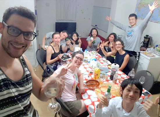 留学エージェントと提携し英語・フランス語圏の留学生を定期的に受け入れすることで、外国人と日本人が日常的に国際交流を楽しめる環境を実現しています。